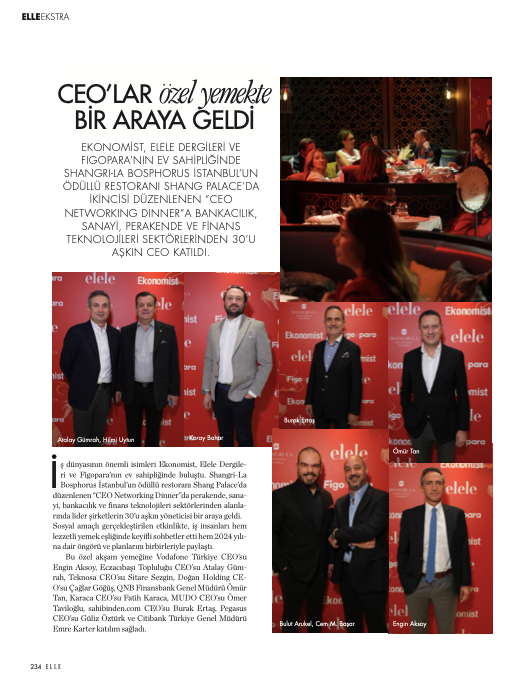 Organized by Ekonomist, Elele and Figopara, and hosted at Shangri-La Bosphorus, Istanbul, the second edition of the “CEO Networking Dinner” brought together 30 senior CEOs from the banking, industry, brand and finance technology sectors.