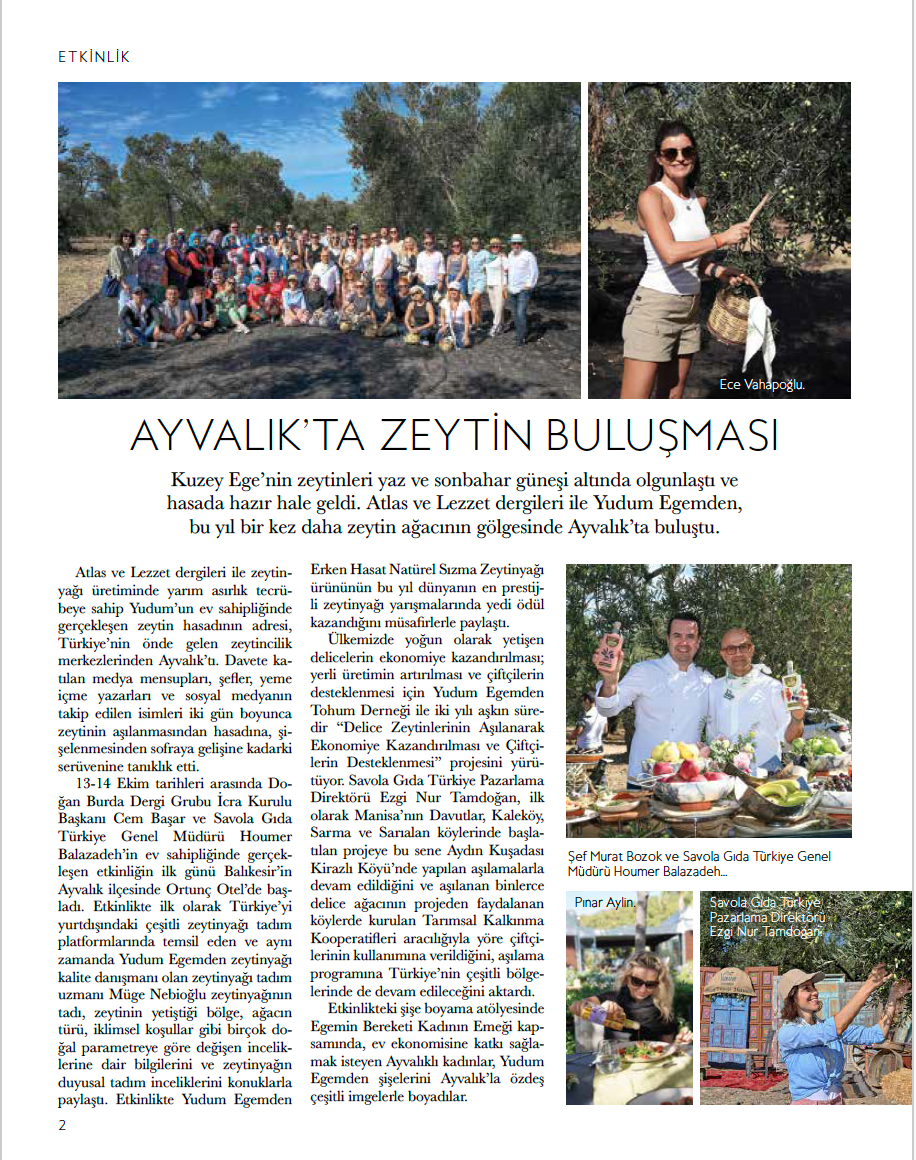 Lezzet and Atlas magazines, in collaboration with Yudum Egemden, hosted their distinguished guests in Ayvalık for a special olive harvest experience.
